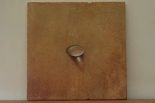 A stone is a landscape on it's own. By painting several transparant layers on top of each other, the light shining upon the piece creates it's unique reflection, depth and image.