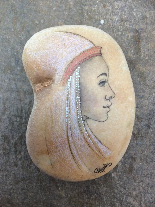 I love the energy sensed during walks by the sea in search of pebbles. Seeing and feeling the different shapes and colours empowers me. Each with their own story, naturally sculpted by the environmental experience over a vast period of time. When creating my illustrations I respect the soul and elements of each stone and use them in the work itself to enhance their vividness.